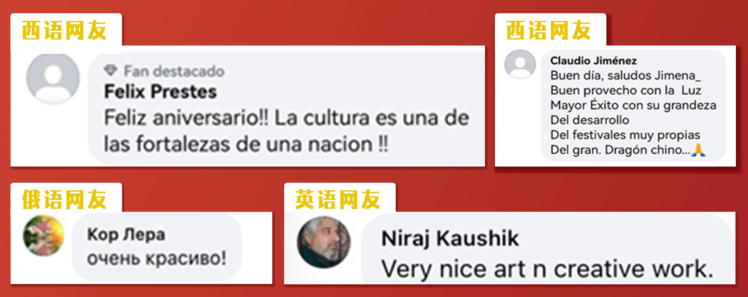 文明魅力无国界,中国文化受海外网友追捧。《彩云追月》《小雅·鹿鸣》《蒲公英的天空》等节目让海外受众领略了元宵晚会蕴含的文化底蕴。众多海外网友纷纷留言表达了对中华文化和中国节日的喜爱。西语网友Claudio Jiménez留言:“中国拥有这么多自己的节日,好棒”。西语网友Felix Prestes说:“文化是一个国家的基石,祝你们节日快乐!”英语网友Niraj Kaushik和Cham Gurung评论说:“很美且很有创意的作品”“节目令人印象深刻,我很喜欢”。