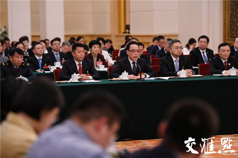 3月7日上午,人民大会堂西大厅,十四届全国人大二次会议江苏代表团举行全体会议,审议政府工作报告,审查计划报告和草案、预算报告和草案。根据大会安排,本次全体会议向境内外记者开放。全国人大代表、省委书记、省人大常委会主任信长星回答了记者提问。全国人大代表、省委副书记、省长许昆林主持会议。财政部部长蓝佛安到会听取代表审议意见。