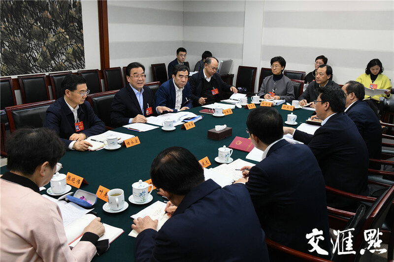 交汇点讯 3月7日下午,十四届全国人大二次会议江苏代表团举行小组会议,审议国务院组织法修订草案。全国人大代表、省委书记、省人大常委会主任信长星,全国人大代表、省委副书记、省长许昆林参加会议。