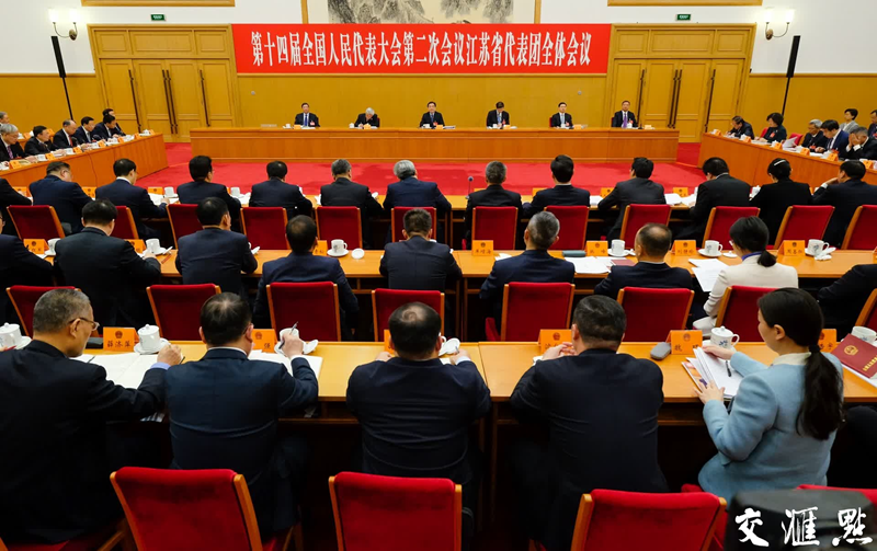 交汇点讯 3月10日,十四届全国人大二次会议江苏代表团举行全体会议,传达学习习近平总书记看望参加全国政协会议的民革、科技界、环境资源界委员并参加联组会,出席解放军和武警部队代表团全体会议时的重要讲话精神;继续审议全国人大常委会和最高人民法院、最高人民检察院工作报告。省委书记、省人大常委会主任、代表团团长信长星主持会议并讲话。副团长许昆林、张忠、储永宏、马欣、樊金龙出席会议。