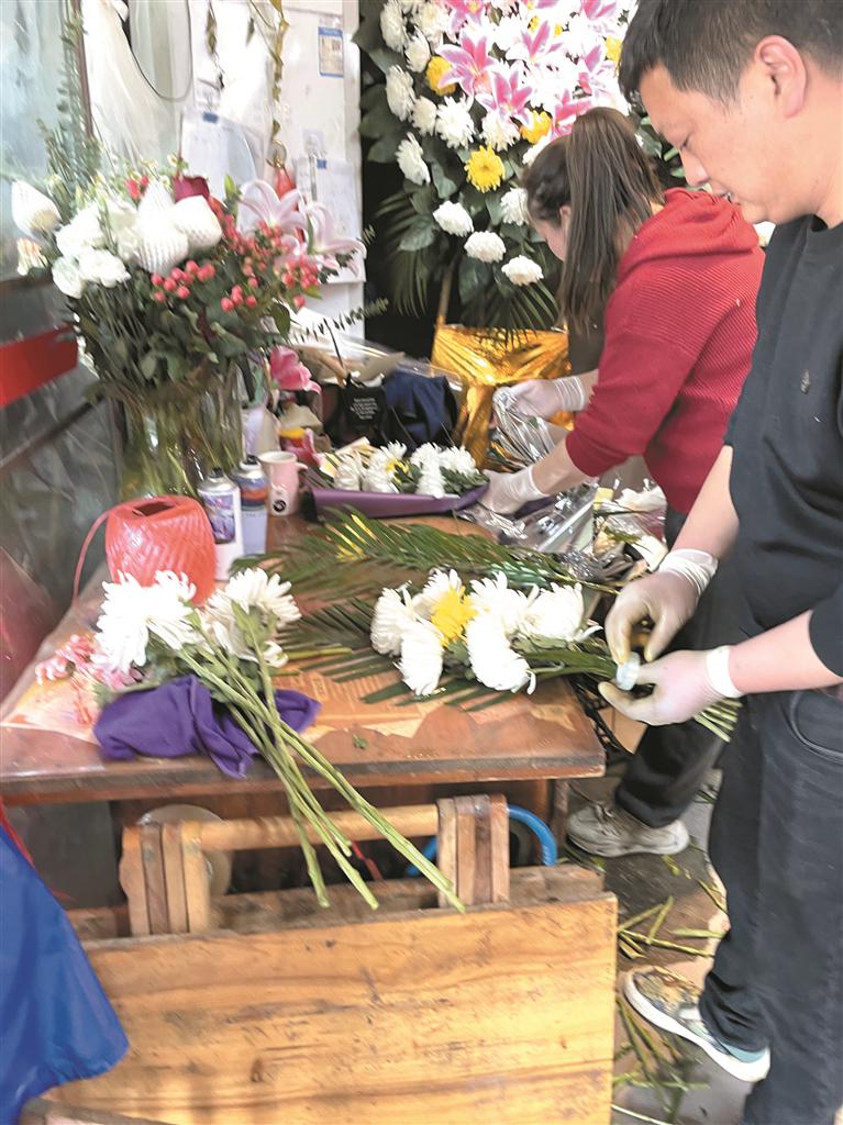 许多花店自2月底便开始备花。菊花到店后需经过醒花和养护,约10天花型才会饱满美观。为应对购花高峰,不少花店都是提前一个月从广州、云南等地空运鲜花。市中心花店老板吴海燕表示,许多老顾客早在3月初便预订了鲜花,除了传统的黄、白菊花外,也有市民选择逝者生前喜爱的鲜花品种组合,预计从本周至清明结束,日均销量将上升50%左右。