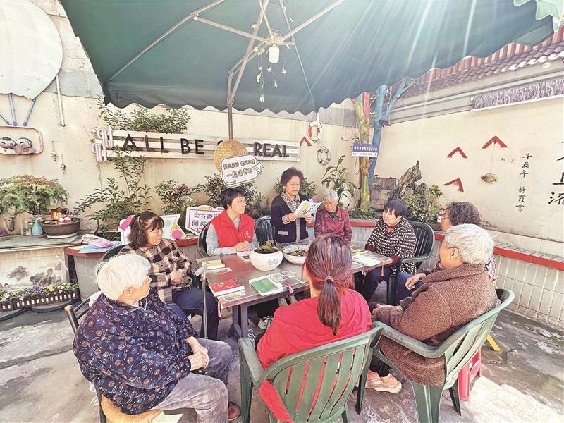 近日,宜兴市宜城街道岳堤社区开展“全龄共沐书香 阅享美好时光”世界读书日主题活动,居民代表欢聚一堂,诵读红色经典、分享阅读心得、推荐心中的“一本好书”, 共享开卷之美、阅读之乐。(宜岳 摄)