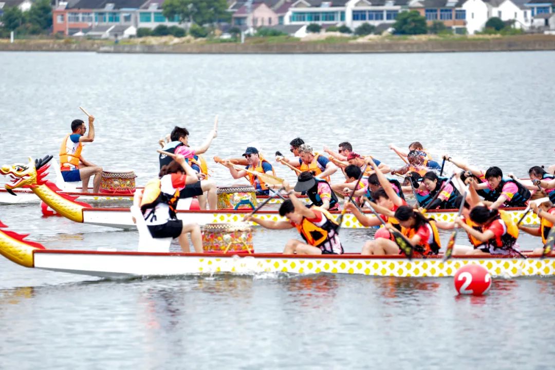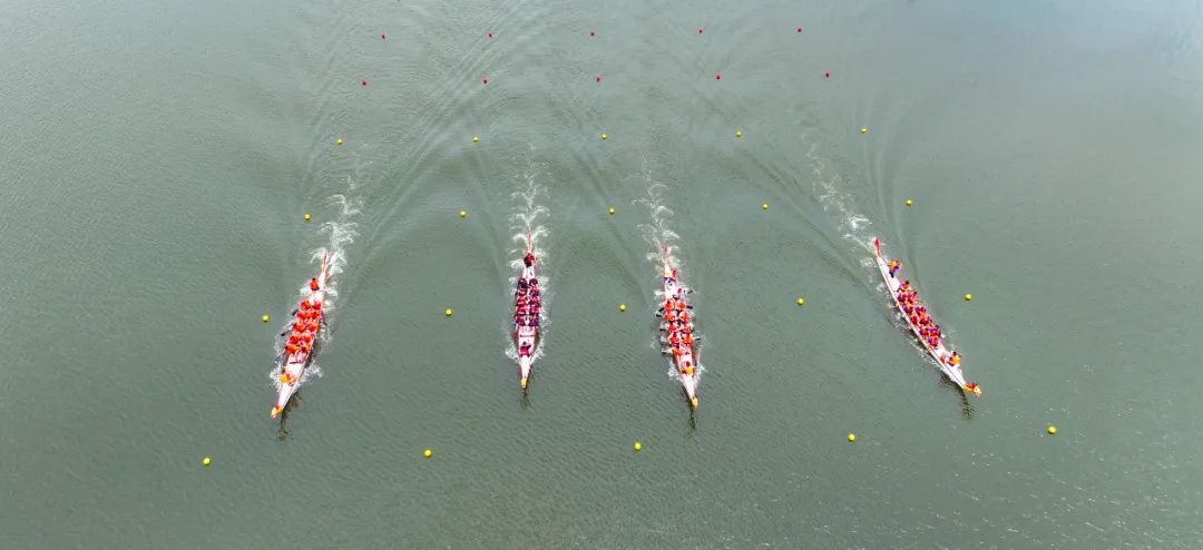 据悉,本次比赛共邀请了全省16支高水平、高规格的龙舟队前来参加比赛。220余名队员在南青荡浪遏飞舟、劈波斩浪,共同迎接传统节日——端午。