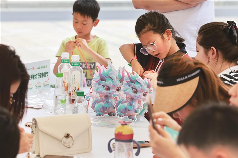 8日是端午小长假首日,在市中心的东林书院,小朋友们通过“沐兰”和“悬艾”两种古老的民俗形式,感受端午民俗; 在中心商圈,孩子们围绕着端午传统做起手工小游戏,从中体味端午“国潮风”。