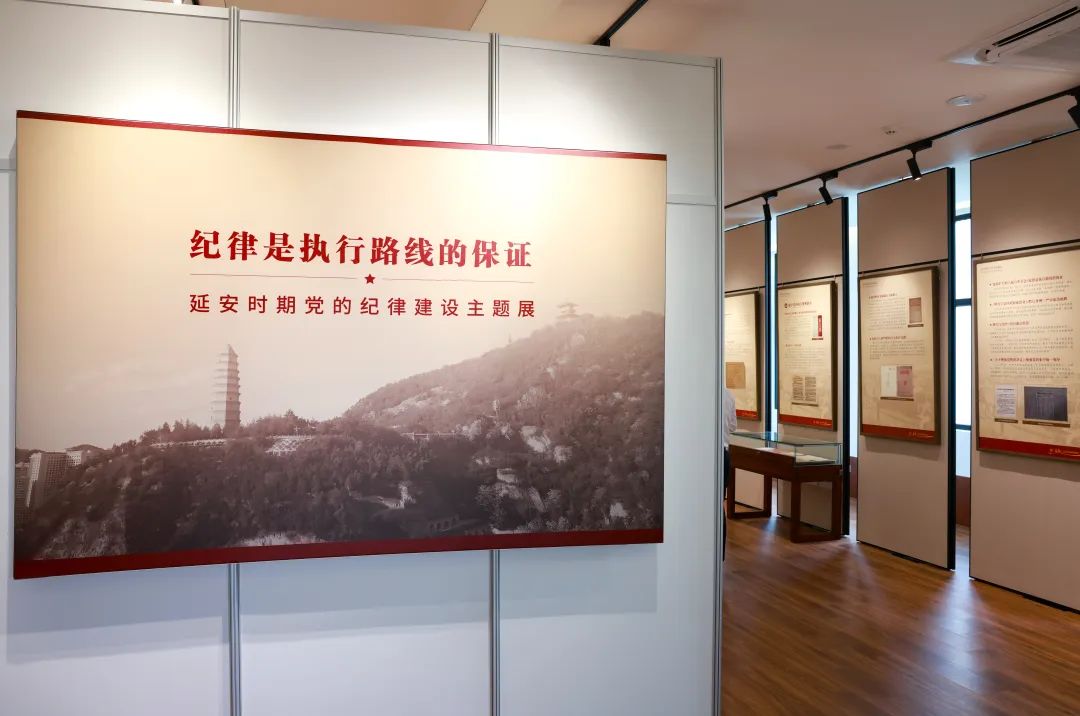 延安精神,培根铸魂。延安时期党的纪律建设主题展分为“立纪:完善党内规章制度”“明纪:不断深化纪律教育”“执纪:加强监督严惩重治”“守纪:自觉养成良好作风”四个部分,旨在通过探寻延安时期党的纪律建设的历史脉络、宝贵经验、红色故事,为党员干部提供独特的“精神钙片”和“纪律戒尺”。大家认真看展览、听讲解,从图文史料、实物展示和一个个发人深省的事例中充分感悟革命圣地的纪律风骨。