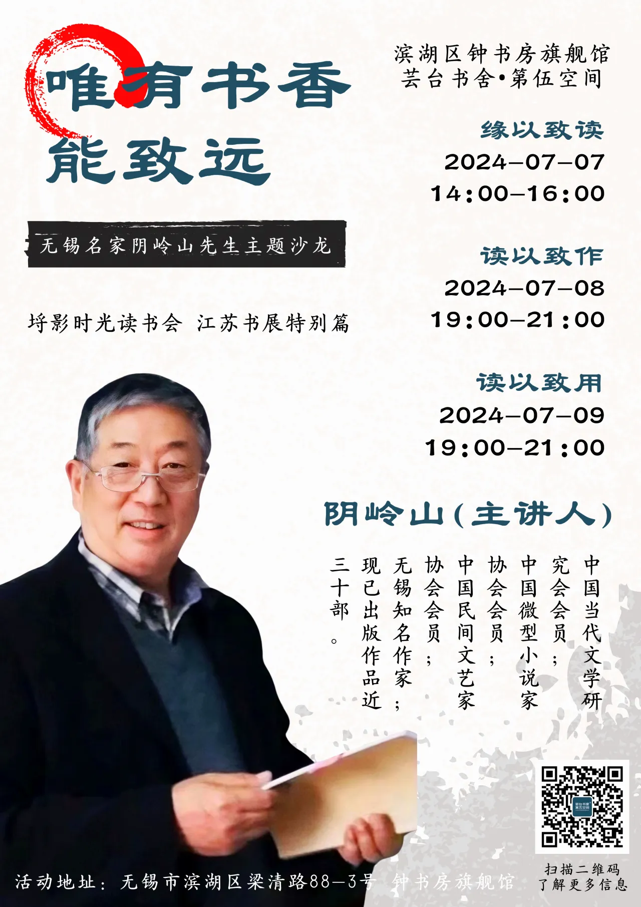 江苏书展是“阅读的盛会,读者的节日”,今年,我市将继续推出“钟书阅读”暑期书香嘉年华,为读者提供优质的文化产品和公共服务。不课书店是东港镇老百姓家门口的图书馆。在这里,不仅有主题读物、各类好书,书香嘉年华期间还有精彩的活动,满足不同群众的文化需求。位于荣巷大公图书馆内的中信书店,将于5日至9日集中举办10场活动,其中,江大人文学院副教授黄晓丹的新书分享会和荣氏家训主题研学活动备受关注,报名火热。