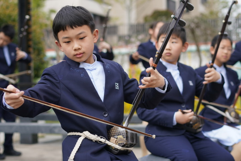 2023年3月29日,江苏无锡梅村实验小学学生在练习二胡。新华社记者 季春鹏 摄