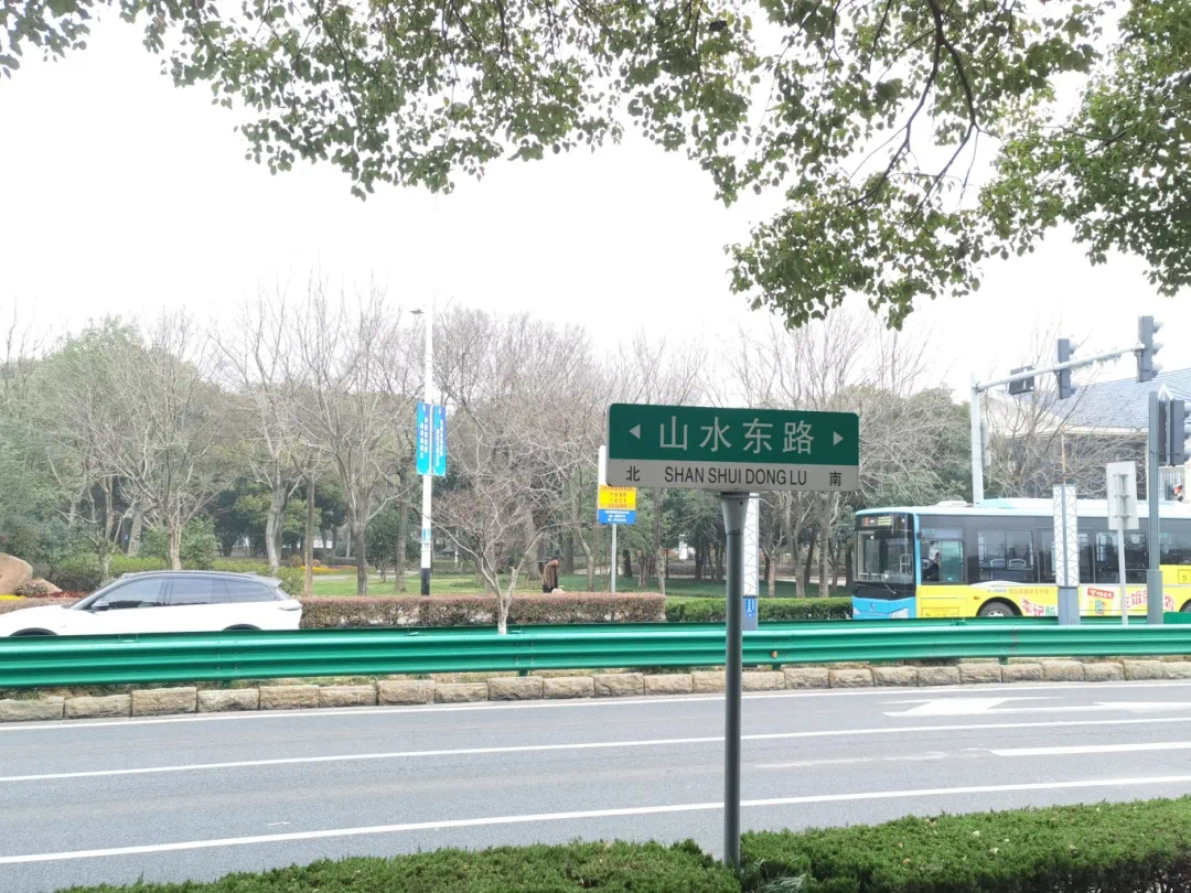 山水东路位于无锡南部,南北走向,11.8公里长,双向车道,起点蠡湖,终点太湖,东侧是长广溪湿地,西侧是军嶂山脉。空中俯瞰,山水东路犹如一条项链镶嵌在太湖之滨。