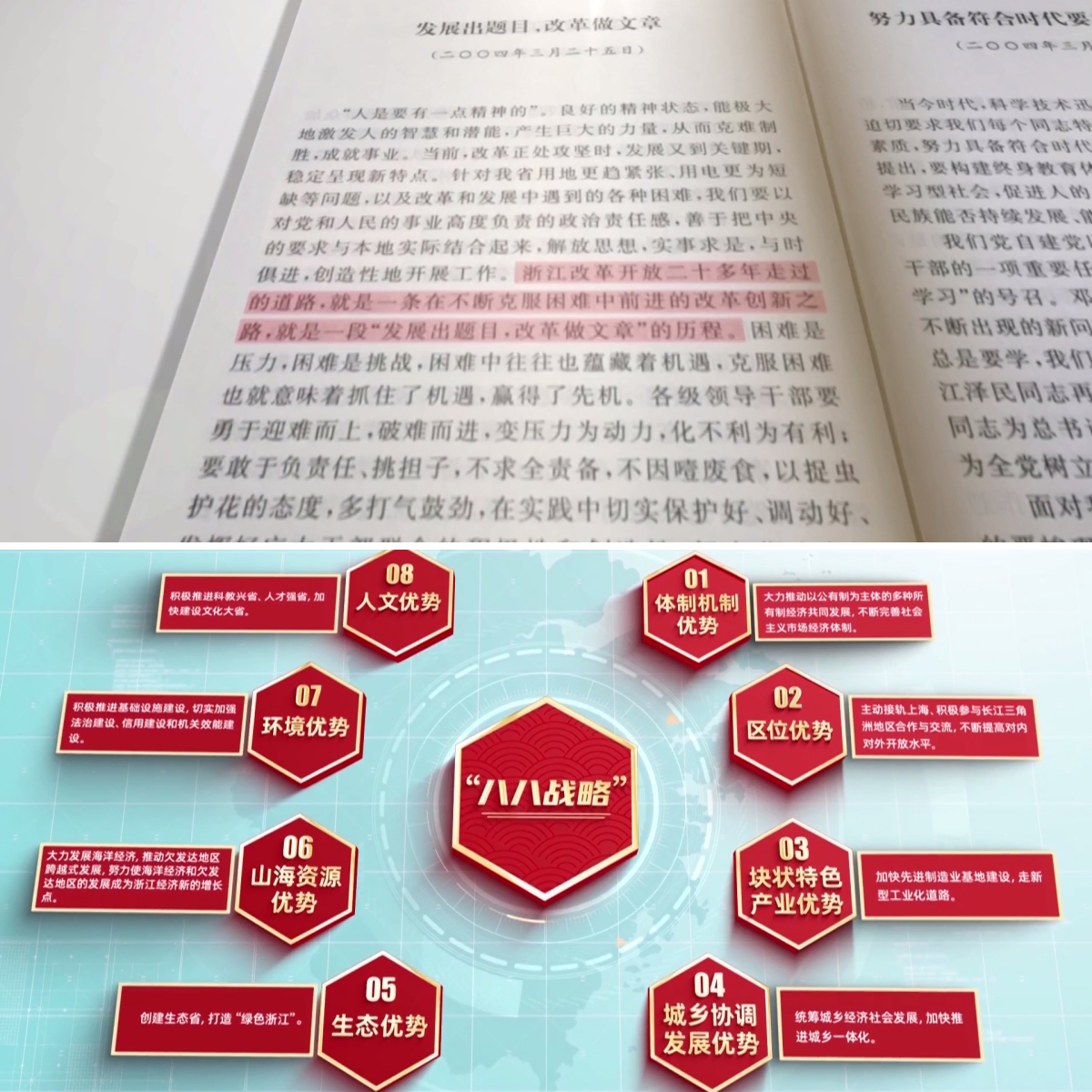 从经济体制改革的一马当先,到政治、社会、生态、文化等各领域改革的全面推开,伴随着“八八战略”的深入实施,改革的力量,推动之江大地发生系统性、整体性的精彩蝶变。