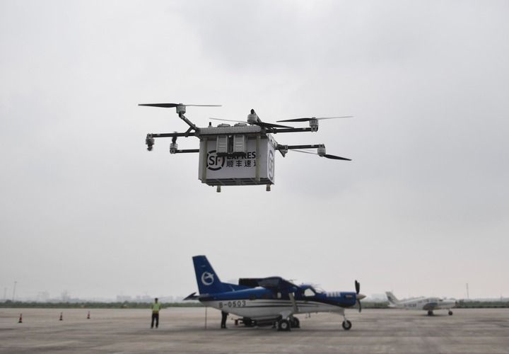 2024年6月28日,搭载着贵阳特色农产品快递的无人机在成都(金堂)淮州机场起飞。新华社记者 刘坤 摄