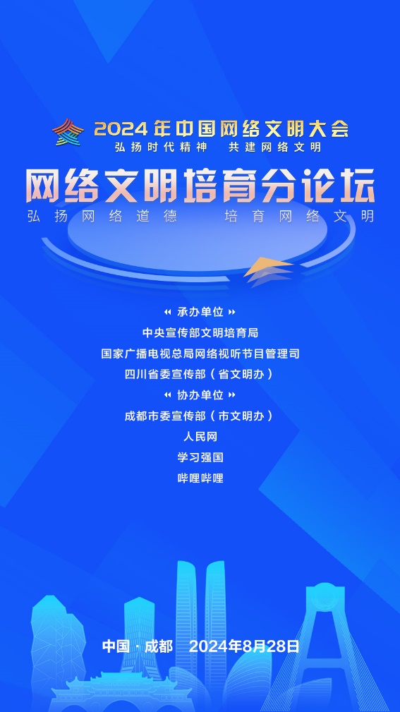 本次分论坛由中宣部文明培育局、国家广播电视总局网络视听节目管理司、四川省委宣传部(省文明办)共同承办,成都市委宣传部(市文明办)、人民网、学习强国、哔哩哔哩协办。