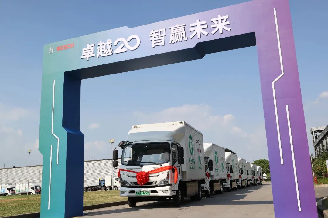 除了本地化的生产制造,还有本地化的应用开发。今年9月,78辆搭载了博世氢燃料电池系统的示范运营车辆从博世动力发车,正式交付客户运营,这是博世在氢能源领域的又一里程碑——实现了氢动力产品“无锡造”和“无锡用”。这些多个吨位和多个品种的氢燃料电池物流车及专用车,分别应用于城市配送、跨市工业品运输、菜篮子冷链保障和市政环卫等场景,为城市动脉注入绿色活力。