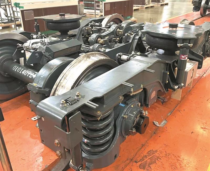 检修完成的转向架上车轮锃亮,墨蓝色的钢架侧边镶嵌着两块红色的铭牌,这是车辆的“身份证”与“体检合格证”:一块上面刻印着转向架的型号、生产日期及制造厂商等信息,另一块在检修结束后才刚刚镶嵌上去,刻印着最新的检修日期。通过这些信息可以对列车“大修”进行溯源,进一步保障检修质量。