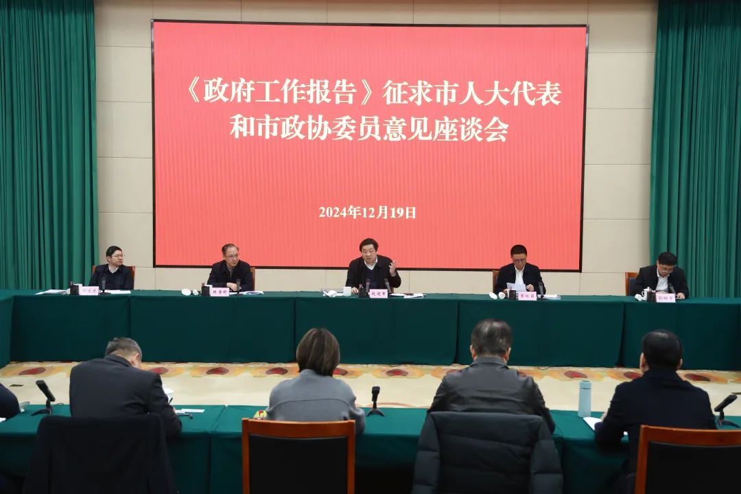 12月19日,市长赵建军主持召开座谈会,面对面听取部分市人大代表、政协委员对2025年提交市人代会《政府工作报告》稿以及政府工作的意见建议。副市长秦咏薪,市政府秘书长陈寿彬参加会议。