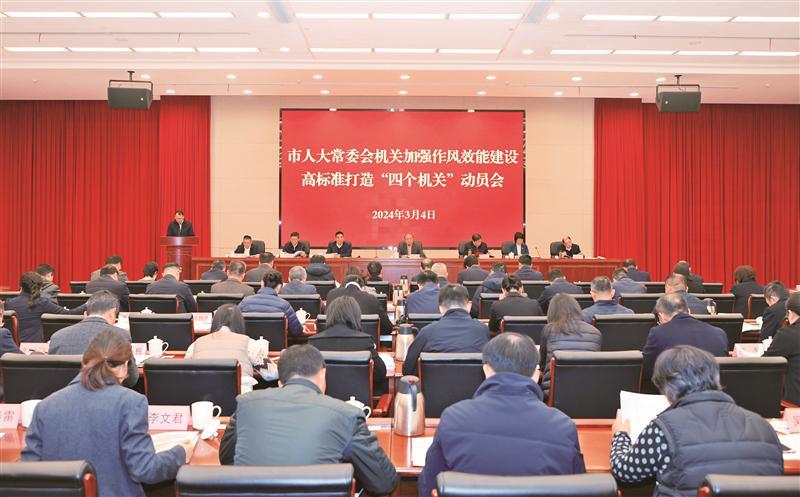 深入打造“四个机关”。市人大常委会坚持把加强政治建设摆在首位,扎实开展党纪学习教育,持续深化“四个机关”建设,着力打造党和人民满意的模范机关。2024年3月4日,市人大常委会召开加强作风效能建设高标准打造“四个机关”动员会。