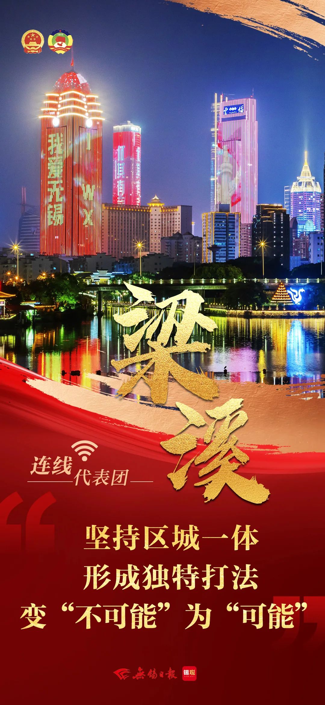 “政府工作报告中提到的成绩振奋人心。牢牢把握‘走在前、做示范’的使命定位和高质量发展这个首要任务,是一个有高度、有力度、有温度的好报告。”梁溪代表团团长、梁溪区委书记朱刚说,梁溪区将坚决贯彻市两会精神,识变应变、思变求变,能快则快、挑起大梁,为全市发展大局多作贡献。