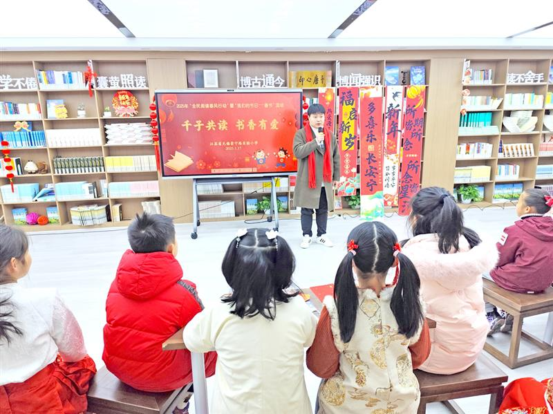 “爆竹声中一岁除,春风送暖入屠苏。千门万户曈曈日,总把新桃换旧符。”在精心布置的校园书房内,孩子们用清脆的童声吟诵有关春节的古诗。1月17日,江苏省无锡崇宁路实验小学开展“千子共读 书香有爱”活动,师生通过分享书单,共同感受春节气息。