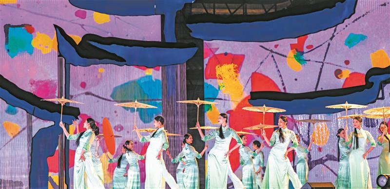 舞台之上,华光熠熠,仿若梦幻之境。演员们的舞步宛如缤纷繁花,诉说着这座历史名城文明的源远流长,“绽放”出甜都的活力与生机。“这次演出太难忘了,是我最珍贵的记忆。导演说,你们每个人都是主角。”17岁的无锡文化艺术学校学生王冉儿和同学们用一出水舞,勾勒出现代江南的迷人风采。“我们这次参加演出的孩子们,平均年龄只有15岁,在半个月的时间里,大家每天学舞、练舞、排练、彩排,都很积极和刻苦。”无锡文化艺术学校党支部副书记、副校长吴婷说,学校也组成了专班,给予孩子们全程保障。