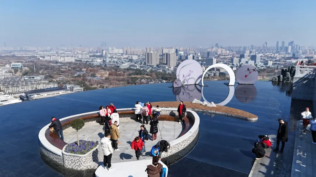 除夕夜的春晚画面中,雪浪山上身着粉衣的青年舞者犹如花中仙子出现在“天空之境”,带领观众一秒入画。“天空之境”区域保留春晚直播画面原貌向公众开放,一旁还设置了春晚主题打卡背景墙,让市民游客沉浸式体验春晚同款现场。相关负责人介绍,在春晚以及各类文旅新场景的带动下,景区旅游持续升温,春节假期预计将接待游客6万人次,同比增长一倍以上。