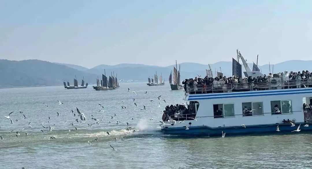 年初一是传统意义上走亲访友的日子,但一大早的鼋头渚还是游人如织。码头旁,是一眼望不到头的长队,水面上,是往来频繁、络绎不绝的船只。喜欢“轧闹猛”的红嘴鸥成群结队,欢叫着伴船飞行,以这样的方式迎接热情的游客。常州姑娘小吴坐船静静地欣赏冬日的太湖风光,“这是江苏首次有城市成为春晚分会场,我一个常州人也是与有荣焉,特地挑了无锡的画面看,相关的短视频都回味了好几遍。”节目中“太湖之上千帆竞发,烟花腾空而起照亮夜空”的场面给她留下了深刻的印象,“春晚中在各种高科技手段的加持下,鼋头渚‘盛装出席’,现在再看有一种不施粉黛也动人的自然沉静之美,两种感觉对比起来很有意思。”