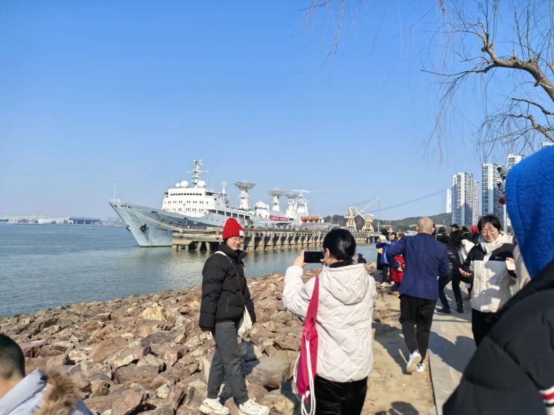 远望二号船上的零点祝福“远望福”等江阴元素出现在春晚舞台上后,奔赴江阴外滩感受长江之美被不少市民、游客提上了大年初一的日程。“特意来看远望二号船的,江阴这8公里沿江公园真是别有一番风情,沿江岸线的美化真是做到位了!”上午9点多的江阴外滩,不少游客正沿着逶迤蜿蜒的长江江岸看惊涛拍岸、潮起潮落。江阴周庄的游客蔡先生带着儿子在长江边打卡拍照,他告诉记者,之所以把春节出行的首站放在了江阴外滩,是因为前一天晚上观看了总台春晚后心潮澎湃,临时起兴跟随春晚的脚步来到这里,“咱们用一句经典网络流行词来形容就是‘虽迟但到’,来了以后确实感觉不虚此行。”蔡先生告诉记者,国乐岛的千人二胡同样震撼,他计划下一站就去现代二胡学派奠基人刘天华的故居看看,重温二胡文化,“千古游圣徐霞客也在春晚画面中出现,春节假期还想去徐霞客故居打个卡。”