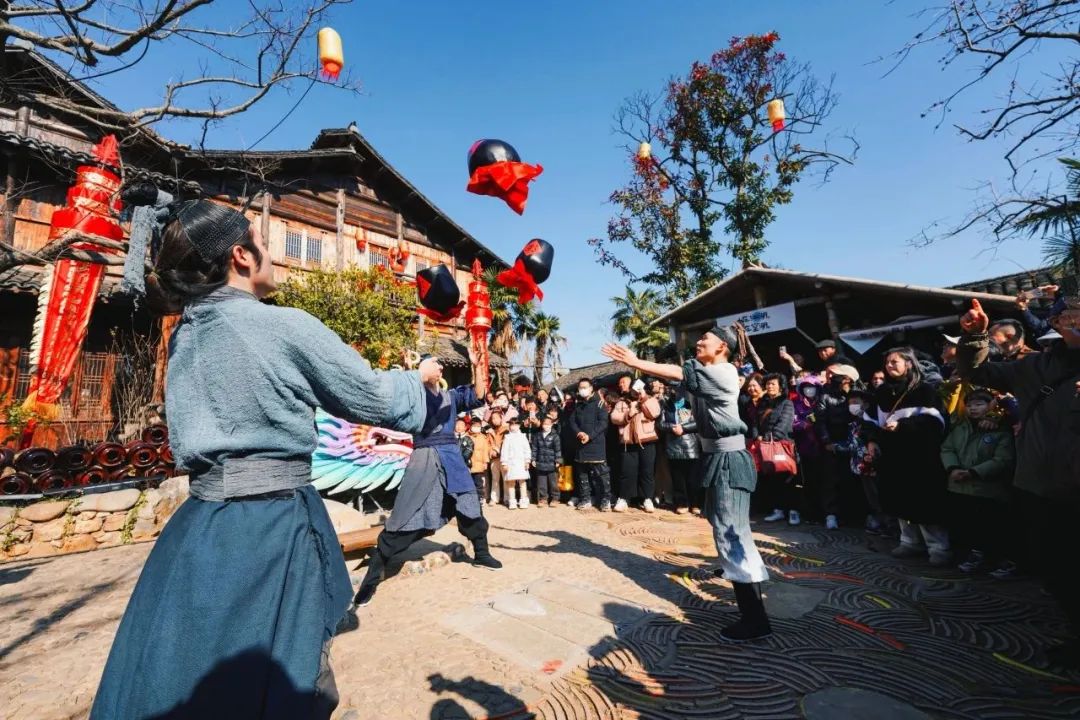 拈花湾的舞狮、舞火龙、花灯展示《醒狮贺岁》纷纷在春晚中亮相,惊艳出场的百米火龙表演将于年初一至初七在景区持续上演。无人机烟花秀、春晚年味市集、新春灯展、欢乐篝火晚会、新春大巡游、缤纷歌舞演艺等精彩活动也将轮番上阵,陪伴游客过大年。据统计,29日当天的入园人数同比增长超过35%。