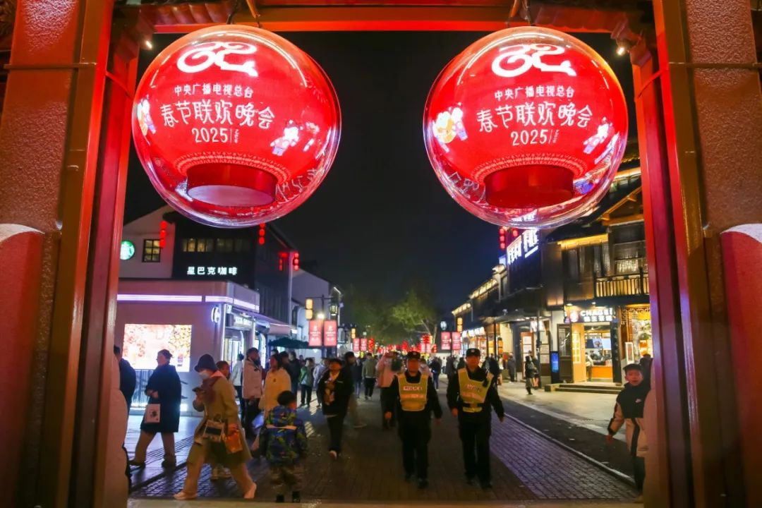 此次春晚安保工作,全市公安机关任务艰巨。去年12月26日到今年1月28日期间,在清名桥、惠山古镇、鼋头渚、南尖公园等春晚主舞台或取景地,公安机关累计投入警力2.2万人次。在清名桥现场,市公安局巡特警支队会同梁溪公安分局不断细致踏勘、优化方案,最大限度压缩管控区域、缩短管控时间,主动为周边商户和居民群众提供便利。