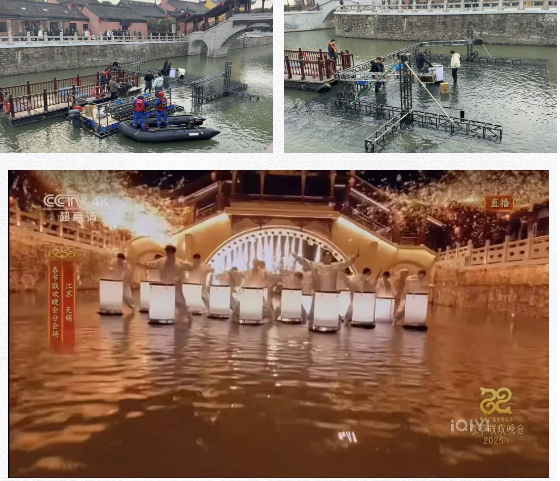 无锡梅里古镇建设发展有限公司总经理陈敏辉坦言,自从古镇被选为分会场取景点,遇到的最大难题就是时间紧迫。“总台短短三天内,我们的方案改了12次才最终敲定。”不仅如此,伯渎河上水下舞台的搭建、打铁花舞龙表演、烟花幕帘等一系列工作都需要在4天内完成。“我们在上海、广州、杭州等全国各地寻找拍摄需要的材料才完成了梅里古镇的春晚舞台场景的布置。”