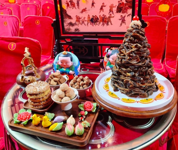 这次,王兴记中餐厅将锡帮菜中的一道名菜“梁溪脆鳝”带到了总台元宵晚会现场,由太湖船菜省级非遗代表性传承人丁益明在现场制作摆盘。梁溪脆鳝源于太湖船菜,以前船老大开船去太湖,会在船上制作这道菜,它的做法也是鳝鱼菜中最为特别的。梁溪脆鳝与锡帮菜都是无锡饮食文化的重要组成部分,展现了无锡作为江南水乡的独特风味与烹饪技艺。梁溪脆鳝盘旋而上的造型,也寓意新的一年长长久久、步步高升。