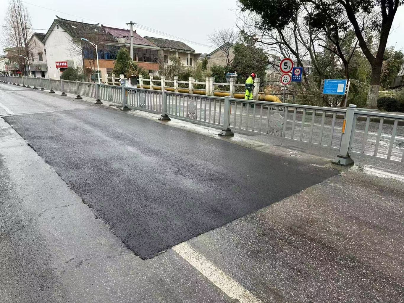 鸿山街道城管条线负责人计栋铭在现场介绍,为化解居民出行的后顾之忧,鸿山街道建设部门及时抓住时机,组织市政养护单位察看道路受损点,并开会讨论制订了道路整体修复方案,最终决定采取对坑洼路面铣刨后修复的施工工艺。为最大限度减少施工对交通的影响,在对路面铣刨时,现场安排工作人员引导车辆有序通行。工人对铣刨过后的路面重新摊铺沥青,同时根据窨井盖的高度,让新修路面与窨井盖基本持平,如此一来,过往车辆的驾驶员就不会感到颠簸了。