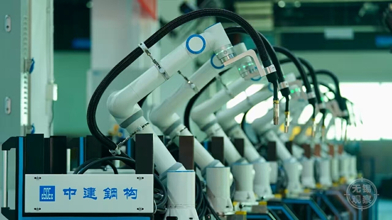 还有企业另辟蹊径,自主研发机器人技术赋能自有生产场景。在江阴—靖江工业园区的中建钢构江苏有限公司车间内,协作焊接机器人不断展现着智能制造的魅力。该企业研发的协作焊接机器人以其卓越的性能,有效降低了焊接的人工劳动强度,提升了焊接效率及焊接质量的稳定性,在一系列国家级重点项目中大放异彩,其中包括深圳博物馆、上海松江站、杭州茶叶博览会等项目。