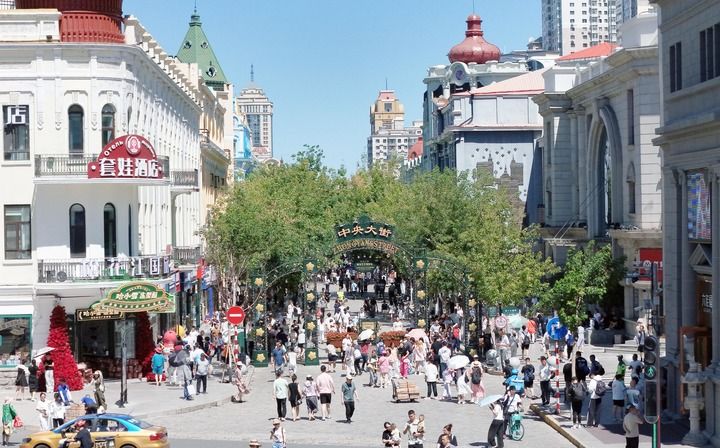 闻名遐迩的哈尔滨中央大街向东不远,中华巴洛克历史文化街区中,工人们在融合巴洛克风格和中国传统雕花图案的建筑前,用传统工艺修补砖缝;靖宇街上,同乐茶园、老独一处等老字号在焕新的青砖灰瓦间重张,熟悉的招牌下飘出诱人香气。