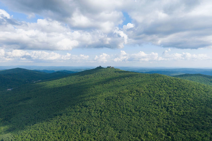 这是位于黑龙江省集贤县、桦南县、双鸭山市岭东区交界处的七星山国家森林公园一角(2025年6月17日摄,无人机照片)。新华社记者 谢剑飞 摄
