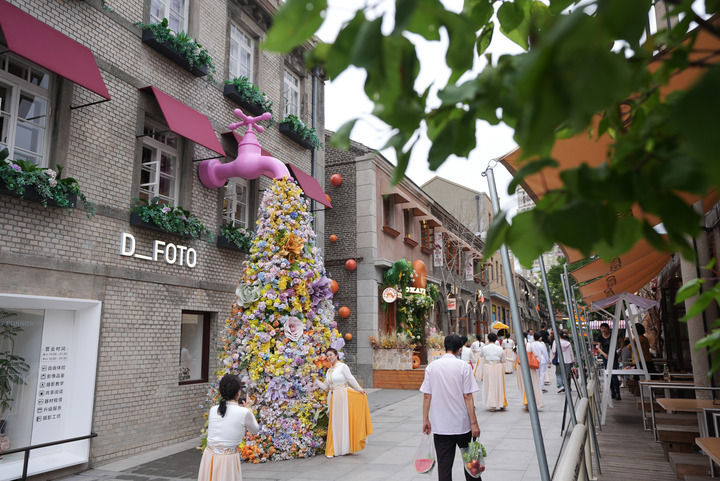 游客在辽宁省大连市东关街历史文化街区打卡拍照(2025年6月13日摄)。新华社记者 李钢 摄