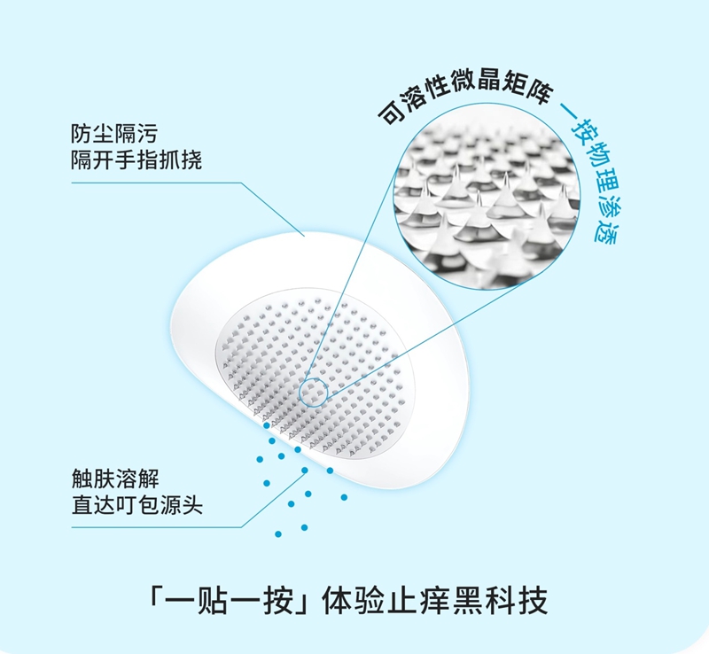 可溶性微晶技术最早出现于十多年前,这是一种新型的经皮给药技术,主要运用在透皮给药、疫苗递送等生物医药领域。此次推出的蚊虫叮咬舒缓贴,是首次将医用级微晶技术应用于家庭皮肤日常护理消费场景。据悉,箴泰生物开发的可溶性微晶止痒舒缓贴拥有自主知识产权,并已申请了国际专利。