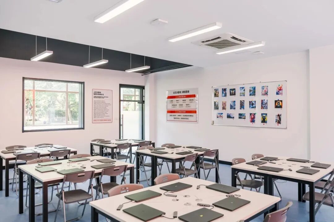 “目前计划开设人工智能通识课与实训课两门选修课,涵盖AI概念、应用伦理、项目实战等内容,未来将逐步推广为高一必修课程。”省锡中相关负责人说。教室设置AI探索中心和AI创作空间,AI探索中心以科普AI基础知识为核心,涵盖AI发展历程、科学家名言与关键技术术语等内容,帮助学生系统建立对人工智能的认知。AI创作空间则专注于展示学生的AI实训成果,包括AIGC作品展示、热点话题互动等,激发学生的创作与表达热情。