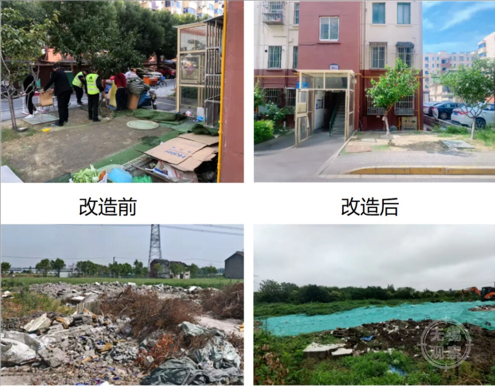 滨湖区河埒街道北桥村部分村民的房前屋后,曾是建筑垃圾偷倒的“重灾区”。市攻坚办联合执法部门雷霆出击,迅速锁定涉事车辆并依法处罚责任人,同时组织清运了60余吨建筑垃圾,并在周边覆盖防尘网,增设警示标识和监控设备,整改后再没收到环境投诉。村民李阿姨站在自家门口笑着说:“现在开窗通风,再也没臭味了!”