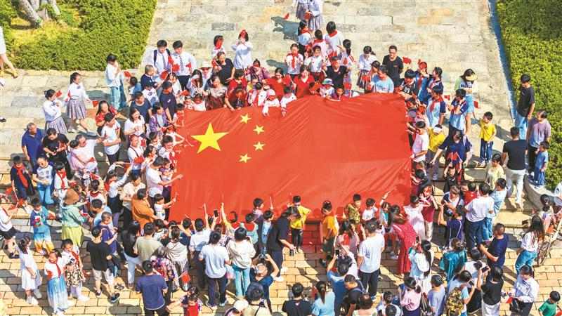 ①人们在“天上村前”历史文化街区唱响《我和我的祖国》,共迎祖国华诞。