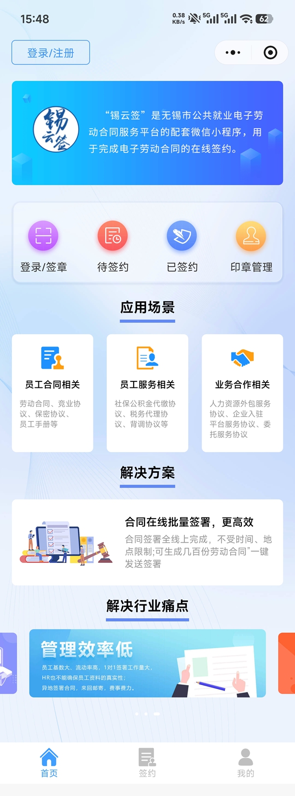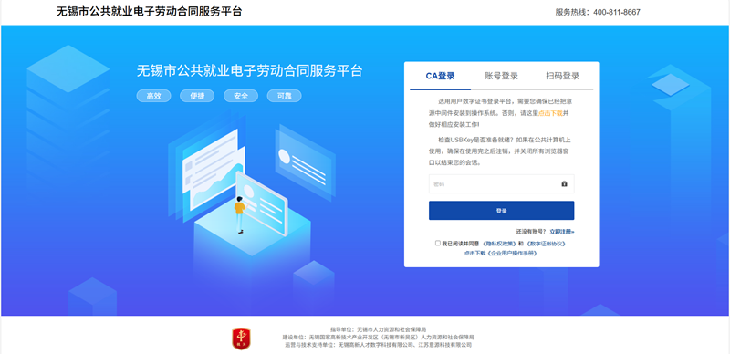 告别打印、盖章、跑腿的繁琐,无锡的企业和劳动者如今只需动动手指,就能完成一份具有法律效力的劳动合同签署。近日,由市人社部门指导打造的公益性数字化服务平台——“无锡市公共就业电子劳动合同服务平台”(简称“锡云签”)正式上线,面向全市企业和劳动者免费开放,为双方带来“签约零跑腿、管理高效率、权益有保障”的全新体验,助力我市劳动合同实现“无纸化”。
