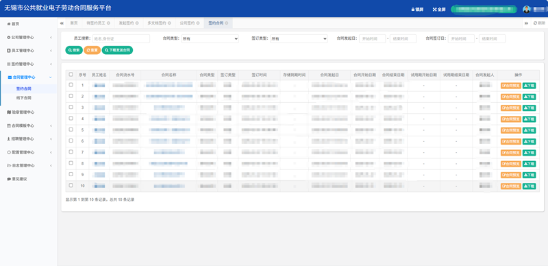 平台试运行以来,已累计服务60余家企业,签订电子劳动合同超2000份。作为首批“尝鲜”的企业,无锡地铁运营有限公司人力资源部副部长张弛算了一笔“效率账”:9月初,公司300余名员工进行劳动合同续签,原先需要把员工集中到大会议室,现场填写、核对、盖章,由于工种多样,填写易出错,公司不得不准备近1.5倍数量的空白合同备用,整个过程耗时费力。
