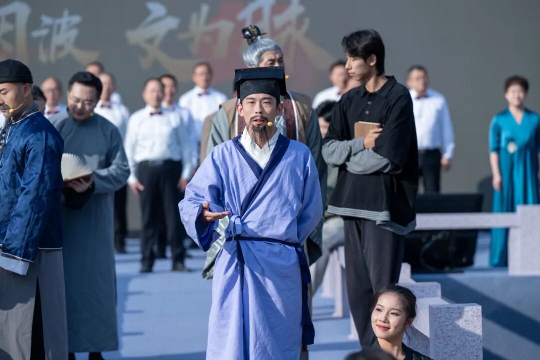 在历史中遇见城市的过去、现在与未来。现场大屏幕上,泰伯、李绅、顾恺之、徐霞客、钱锺书等无锡先贤“穿越”而至,共同吟诵无锡源远流长的历史,随后,民族实业家荣德生与年轻的规划师展开了一场跨越时空的“对话”,翻开荣德生先生的《无锡之将来》,能清晰地看到他勾勒的无锡城市脉络,百年前的蓝图与今日城市的璀璨现实交相辉映。