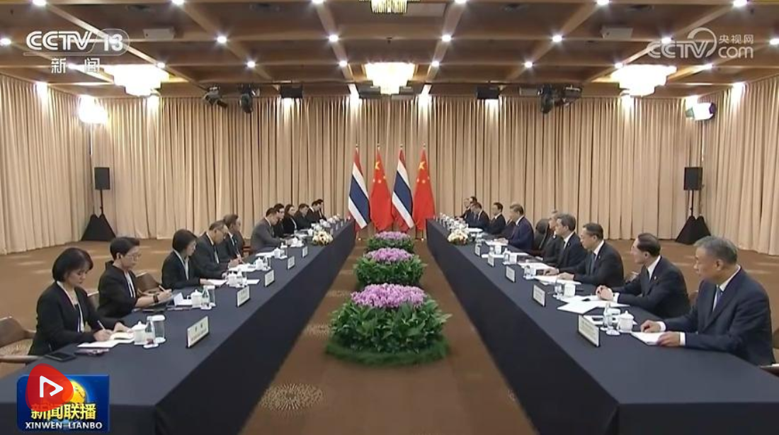 习近平指出,中国和泰国是好邻居、好朋友、好亲戚、好伙伴,常来常往、亲如一家。2022年11月我访问泰国,中泰关系进入构建命运共同体的新阶段,两国友好根基更牢、合作动能更强。今年是中泰建交50周年暨“中泰友谊金色50年”。站在新起点上,双方要继往开来,共同推动中泰命运共同体建设走深走实,助力两国各自现代化进程,为地区和平稳定和发展繁荣作出更大贡献。