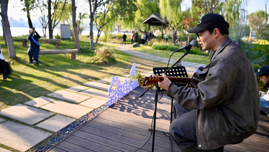 无锡这片音乐热土,吸引着越来越多音乐力量的汇入。乐读慢岛上,民谣歌手抱着吉他浅唱原创歌曲《南方泉》,歌词里传递着浓浓的江南水乡风情。“我写这首歌的时候,总在南方泉的老街上逛,听老人讲这里的故事。”他的歌声刚落,大门牙音乐工作室便唱响了《外面的世界》。主唱告诉记者,他们想通过原创,让大家领略无锡现代音乐的活力。原紫藤长廊尽头是“绿茵新声”舞台,“苏超”无锡球迷会和本土乐队联袂献唱“苏超”助威歌曲《上吧!无锡!》,点燃全场。“足球和音乐都是热血的东西,以后去看球,我们还要把无锡唱给更多人听。”球迷陆唯翼说。