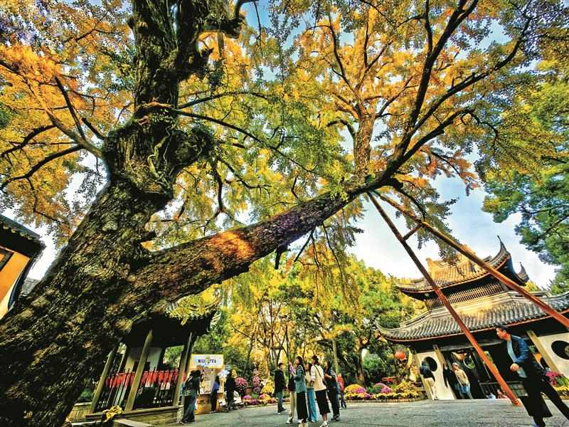 11月24日,惠山古镇景区内的银杏树进入了年度最佳观赏期,吸引了众多市民游客前来打卡。(钦嫣 摄)