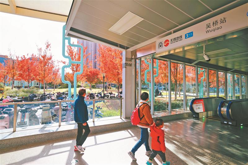 初冬时节,地铁3号线吴桥站三号口“枫”景别具风韵。站台旁,成片的枫树红叶缀满枝头,如霞似火,与站台现代建筑相映成趣。往来乘客纷纷驻足,无需刻意构图,随手一拍便是充满故事感的都市大片。这处藏于地铁线的“枫”景,为城市快节奏生活平添了一抹温暖明亮的诗意。