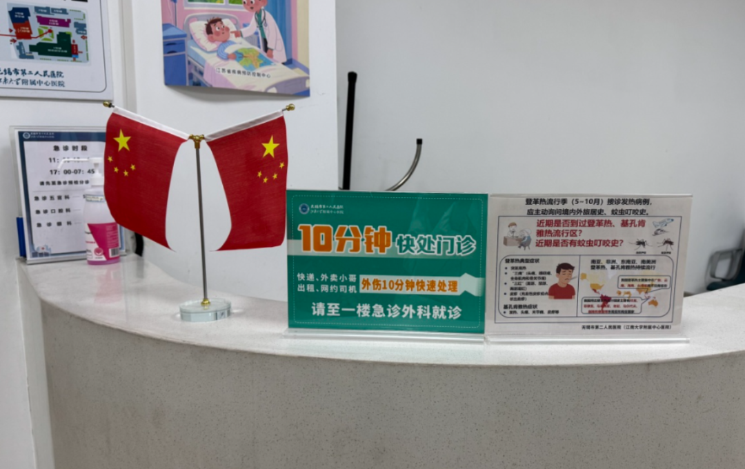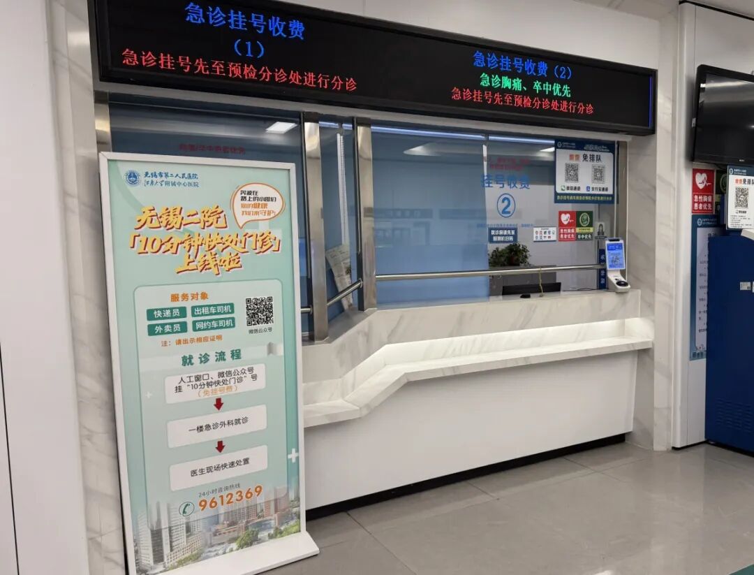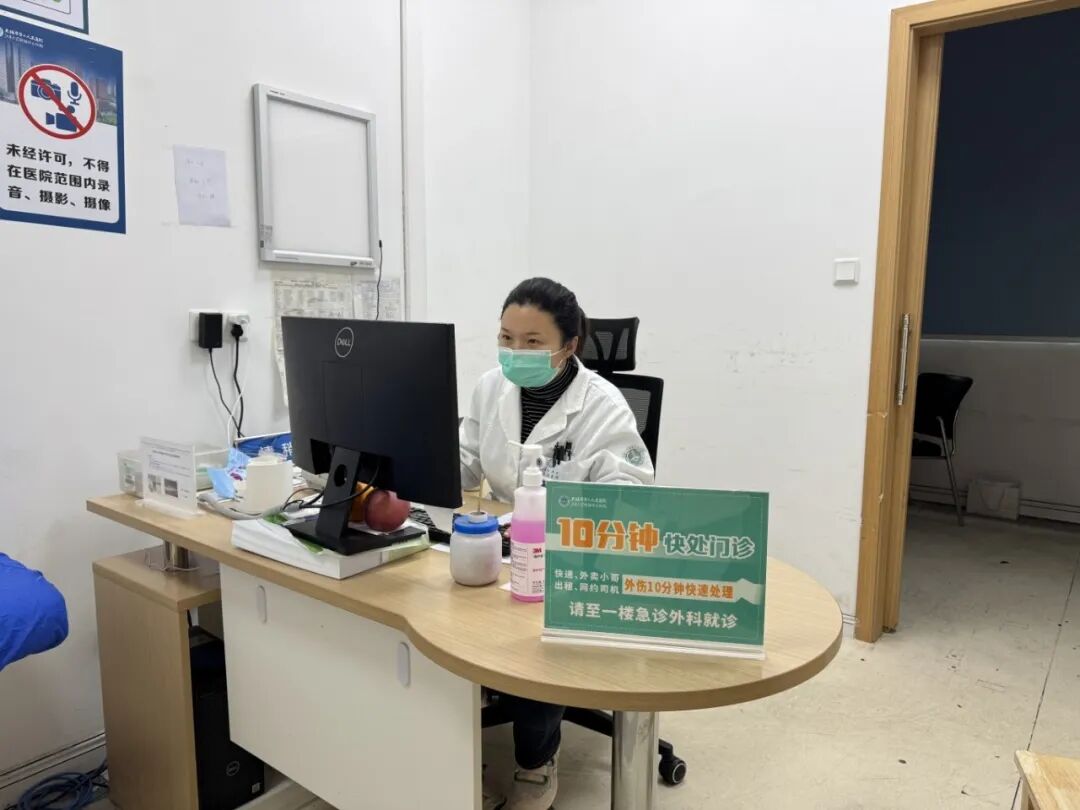 近日,外卖员小吴到位于中山路的市二院南院区送外卖时,偶然看到急诊处的“10分钟快处门诊”告示,他立即到分诊台询问工作人员。原来,当天送外卖的路上他不慎腿部受伤,本想忍一忍等空闲时间再到医院处理,发现二院面向新就业群体有绿色通道,当即决定马上就诊。