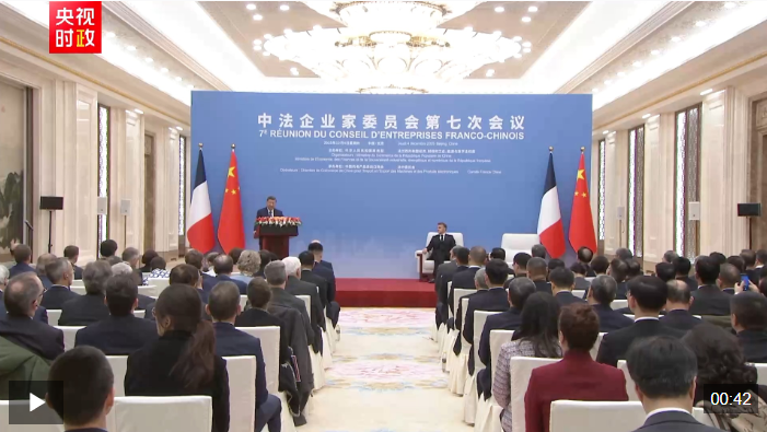 12月4日中午,国家主席习近平在北京同法国总统马克龙共同出席中法企业家委员会第七次会议闭幕式并致辞。
