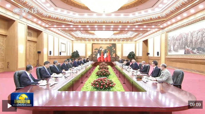 12月4日上午,国家主席习近平在北京人民大会堂同来华进行国事访问的法国总统马克龙举行会谈。