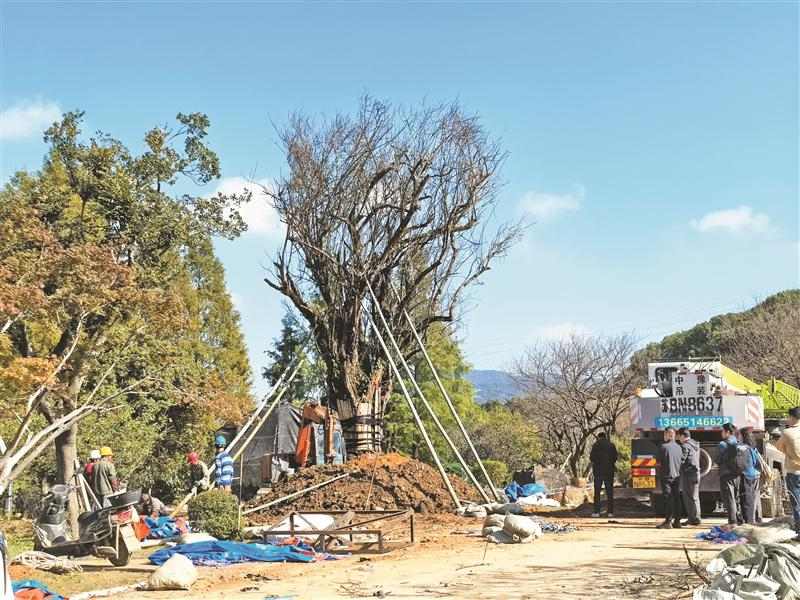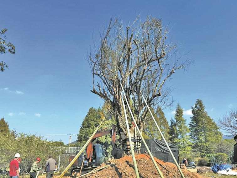 昨天(11月5日),梅园景区,一棵被六根粗毛竹支架牢牢固定的古梅树刚完成定植,黝黑虬曲的枝干直插蓝天,尽管尚未开花,却已凭“霸气身形”成了全场焦点。[详情]