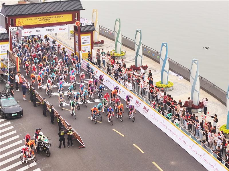 清晨8点的马山环岛赛道起点,早已是一片热闹景象——职业车手们穿着色彩鲜明的队服,反复调试着自行车;大众骑行爱好者举着“环太湖,爱无锡”的旗帜合影;赛道旁的观众挥舞着加油棒,不少人还带着早餐,准备全程见证这场收官之战。
